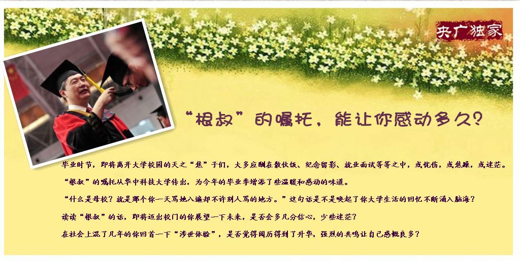 |  | 華中科技大舉行"最牛"畢業(yè)典禮 "根叔"激情致辭