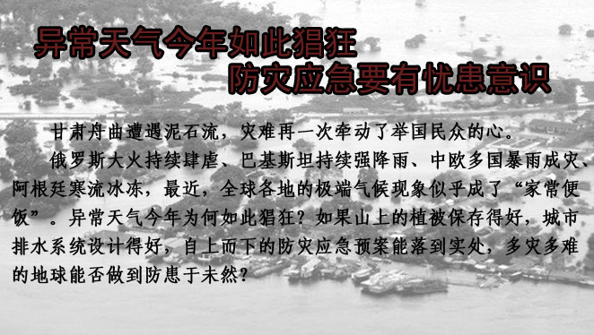 俄羅斯大火持續(xù)肆虐、巴基斯坦持續(xù)強(qiáng)降雨、中歐多國(guó)暴雨成災(zāi)、阿根廷寒流冰凍,最近,全球各地的極端氣候現(xiàn)象似乎成了“家常便飯”。異常天氣今年為何如此猖狂?多災(zāi)多難的地球能否做到防患于未然? <詳細(xì)>