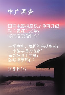 而這兩者都將對國美的市場經(jīng)營極為不利,其導(dǎo)致的不僅將是黃與陳的俱傷,更是國美電器的最大不幸!或者我們想象力更豐富一下,面對電器商場門店式經(jīng)營的困局,這又會不會是被導(dǎo)演的一場騙局呢? |