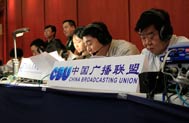 中央臺(tái)總編室新聞宣傳管理處處長劉磊在審聽直播前試音