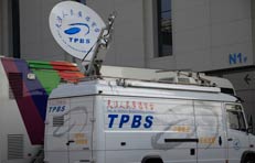 媒體轉(zhuǎn)播車集結(jié)會(huì)場外