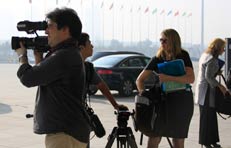 中外媒體記者早早來到會(huì)場采訪拍攝到場嘉賓