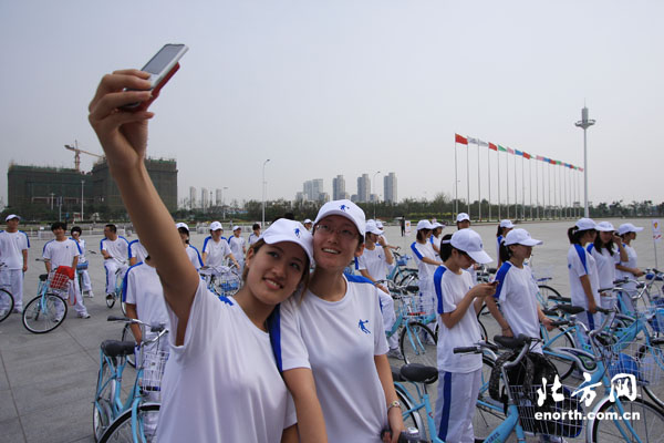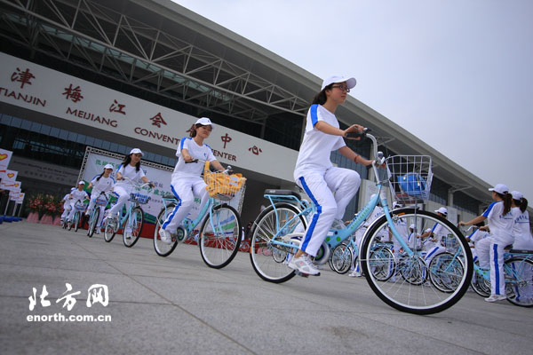 天津北方網訊:3日下午,2010天津夏季達沃斯論壇城市志愿者騎行隊成立暨“綠色騎行、快樂低碳”宣傳活動啟動儀式在梅江會展中心前廣場舉行。200位志愿者騎行隊員將深入本市主要街道和居民社區(qū),向市民和游客廣泛宣傳天津夏季達沃斯論壇和低碳環(huán)保理念。