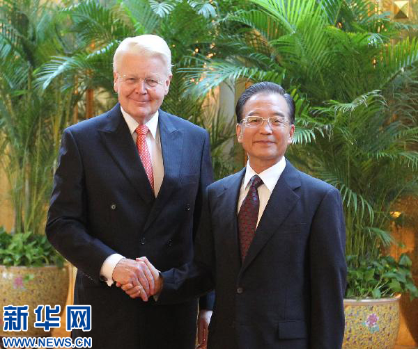 9月13日,國(guó)務(wù)院總理溫家寶在天津會(huì)見(jiàn)來(lái)華出席夏季達(dá)沃斯論壇的冰島總統(tǒng)格里姆松。新華社記者 丁林 攝