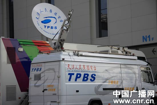 媒體轉(zhuǎn)播車集結(jié)會(huì)場(chǎng)外