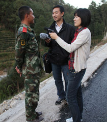 中央臺(tái)記者孫杰、王嫻采訪武警交通部隊(duì)?wèi)?zhàn)士