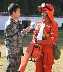 中央臺(tái)記者孫杰采訪訓(xùn)練中的森警