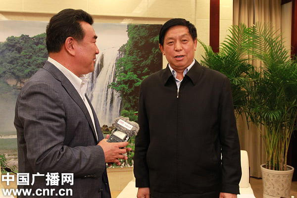 中央臺(tái)“走轉(zhuǎn)改”系列報(bào)道“傾聽貴州”采訪團(tuán)成員之一,中央人民廣播電臺(tái)臺(tái)長(zhǎng)王求采訪貴州省委書記、省人大常委會(huì)主任栗戰(zhàn)書