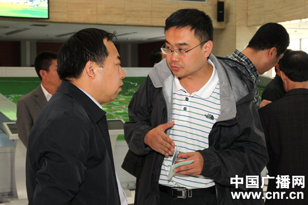河北記者站站長王志勇在《傾聽河北》采訪中與副站長杜震商討報(bào)道方案