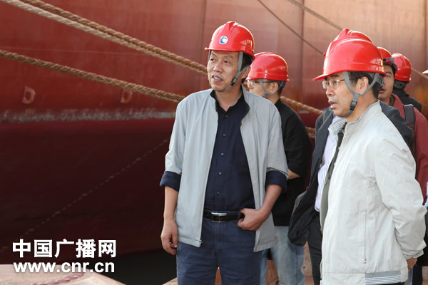 中央人民廣播電臺“喜迎十八大走基層轉作風改文風”《傾聽河北》采訪團成員、中國之聲總監(jiān)蔡小林在河北曹妃甸礦石碼頭采訪