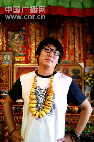 康珠的家雖然是租的房子,雖然客廳只有5-6平米,但是經(jīng)過(guò)他精心的裝飾和布置,房間四壁掛滿了佛像、照片、壁畫,充滿了藏族特色。剛坐下,康珠就為我們斟滿家鄉(xiāng)的茶,一種很香的據(jù)說(shuō)可以緩解高原反應(yīng)的茶,這個(gè)時(shí)候,我才認(rèn)真的打量了康珠一番:黝黑的皮膚、又黑又濃的自來(lái)卷頭發(fā)、胸前長(zhǎng)長(zhǎng)的佛珠,再加上單純善良的笑容,典型藏族男人的形象。之前我對(duì)他的了解,僅限于“商家描述”:他算西藏特產(chǎn)的“一級(jí)批發(fā)商”,諸如蜜蠟、綠松石之類的很多原礦石,他從普通藏民家收購(gòu)回來(lái),然后倒手賣給八廊街的店鋪;而像藏刀、手串這種工藝品,他還會(huì)自己制作,選料正宗、工藝還算精美,所以,他賣的東西,要比普通店鋪便宜很多。只是他的貨品不全,你來(lái)了,趕上他“收”到了什么東西,就看什么東西;如果你有特定要求,比如什么品質(zhì)的蜜蠟、什么樣子的首飾,他再幫你找或者制作,有點(diǎn)“私房菜”的意思。