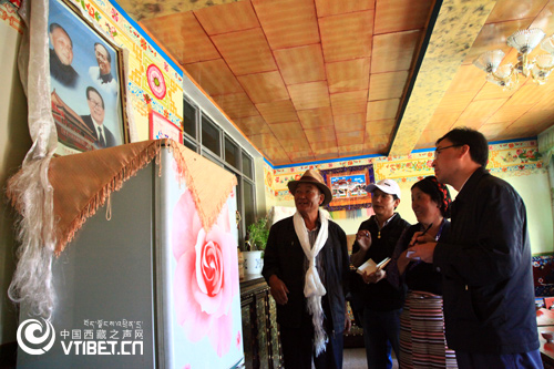據(jù)西藏人民廣播電臺記者張先群、德吉、普布報道:2001年7月20日,時任中共中央政治局常委、國家副主席、中央軍委副主席的胡錦濤率領(lǐng)中央代表團來到拉薩市堆龍德慶縣乃瓊鎮(zhèn)乃瓊村,看望慰問了村民扎桑一家。如今11年過去了,本臺記者走訪了扎桑一家。走進扎桑家寬敞、干凈的藏式院落,金色的陽光正好灑在兩層的石砌房上,太陽灶上一壺?zé)_的水不時發(fā)出“咕嘟咕嘟”聲,扎桑的丈夫旺堆羅布正在悠閑地清除花壇里的雜草。眼前的一切不僅讓記者的內(nèi)心感到一絲平靜和莫明的感動。不同于別的農(nóng)牧民家庭,在扎桑家客廳最顯眼的位置上,擺放的是三代領(lǐng)導(dǎo)人的畫像。扎桑告訴記者,這是胡錦濤總書記2001年贈送給他們的禮物,回想十一年前的那一幕,扎桑仍然非常激動。她說:“沒有想到國家主席會來我們普通老百姓家里噓寒問暖,他告訴我們,再怎么辛苦也一定要堅持送孩子讀書,孩子有出息了日子就會不一樣。現(xiàn)在想想主席的話真的是改變了我們一家的命運!甭犃撕倳浀慕陶d,扎桑夫婦便克服經(jīng)濟困難,堅持讓兩個孩子都完成了學(xué)業(yè),F(xiàn)在大女兒央珍是一名那曲安多縣中學(xué)的會計,小兒子洛桑平措去年也在尼木縣找到一份獸醫(yī)的工作。兩個有出息的孩子讓老兩口沒有后顧之憂,日子過得平靜且安詳。扎桑說:“我們做父母的一輩子就只為孩子操心,現(xiàn)在孩子們都有出息了,我們也就放心了。很慶幸我們當(dāng)時聽了總書記的話,現(xiàn)在一切都苦盡甘來了!痹8嬖V記者:“隨著現(xiàn)在的惠農(nóng)政策越來越好、越來越多,夫婦倆對未來的生活還有許多計劃。目前,乃瓊鎮(zhèn)824戶搬遷群眾的安居房正在修建,夫婦倆已為自己的孩子選了一套,而總價28萬的房子他們只需承擔(dān)18萬。黨和政府給我們農(nóng)牧民解決了好多困難,看病不用花錢、上學(xué)還有“三包”政策,這下連買房都解決了這么一大筆資金。實在是太好了!11年來,扎桑的一層木房換成了兩層的石砌房,孩子們相繼畢業(yè)找到了工作,村里的集體經(jīng)濟也讓老兩口有了固定的收入。回想十年前靠壓面磨面維持生計的日子,扎桑對現(xiàn)在的生活非常滿足她說:“知足者常樂。我和老伴現(xiàn)在每天就轉(zhuǎn)轉(zhuǎn)經(jīng),散散心、感到很快樂、很愜意,F(xiàn)在最大的愿望就是早點抱上孫子,好好享清福了!