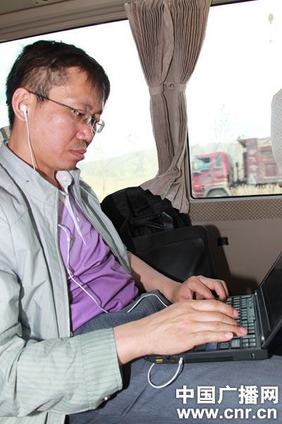 中央臺記者張孝成在《傾聽新疆·走轉(zhuǎn)改》采訪路途中編輯音頻