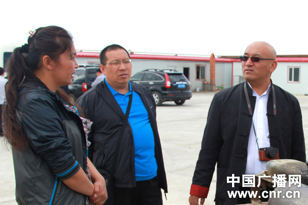 中央臺平面中心主任孫雷軍(中)、中國之聲副總監(jiān)李偉(右)在采訪農(nóng)戶