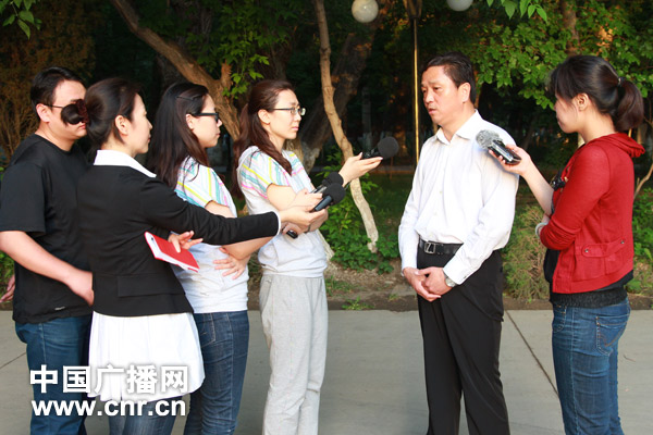 劉黎黎(右)、杜希萌(左四)、楊寧(左三)在《傾聽新疆》活動(dòng)中采訪新源縣委書記