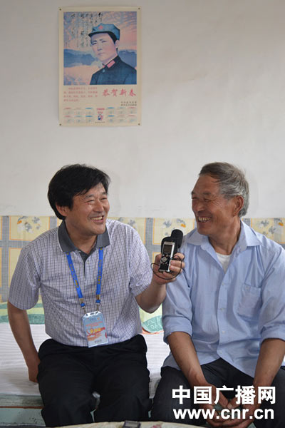中央人民廣播電臺副總編輯李國君在農(nóng)戶李克斌家采訪(中廣網(wǎng)記者董浩攝)
