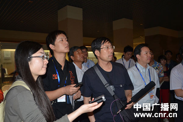 中國廣播網(wǎng)副總伍剛在認(rèn)真采制圖片新聞(中廣網(wǎng)記者董浩攝)