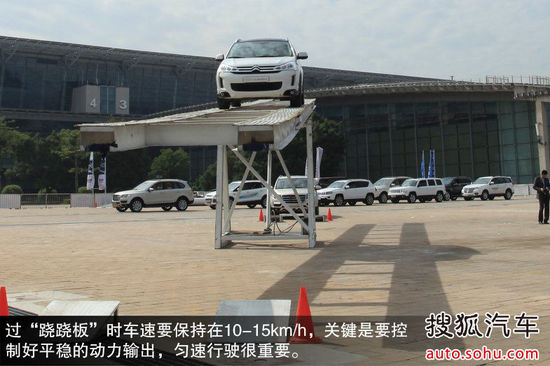 過(guò)“蹺蹺板”時(shí)車(chē)速要保持在10km/h至15km/h,關(guān)鍵是要控制好平穩(wěn)的動(dòng)力輸出,勻速行駛很重要,當(dāng)然其次就是考驗(yàn)駕駛者的心理素質(zhì)。