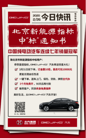 根據(jù)BEIJING品牌發(fā)布的北京市新能源指標中“標”通知,3月31日前下訂的用戶,可享訂金翻10倍(最高可抵10000元)以及兩年免息的優(yōu)惠,置換還有1.5萬的補貼,相當于最低9.49萬就能開走EX3 R500。還可以交完首付90天后再開始還款,相當于免費開車3個月!如果是老客戶推薦的新車主,雙方還都能獲得終身免費保養(yǎng)!疫情期間,享受“無接觸”購車服務,線上訂車,保險、貸款、上牌全部辦好后,直接在家提車。當下手握指標的朋友們,請嚴重考慮,謹防錯過這大禮。