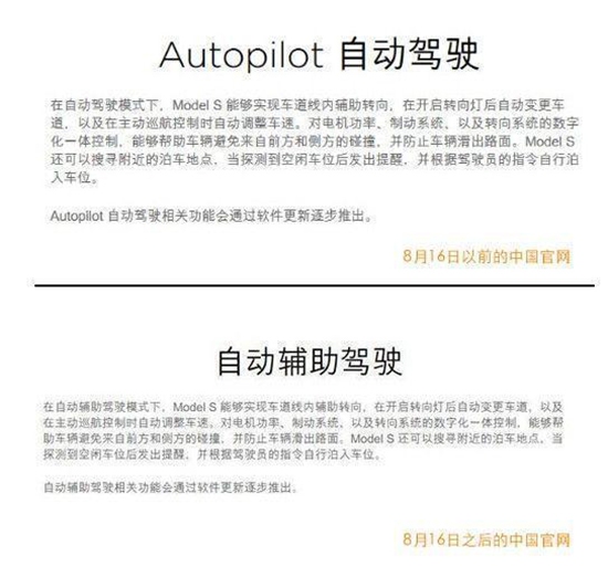 隨著Autopilot“名不符實”的表現(xiàn)增多,特斯拉將其“改頭換面”,以求“符合實際”。2018年8月,特斯拉中國官網(wǎng)將Autopilot的描述中的“自動駕駛”全部更換為“自動輔助駕駛”;同年10月,特斯拉從官網(wǎng)上撤下了“全自動駕駛”的選項。