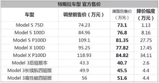 2019年3月1日,特斯拉的“大促銷”則有些“不作不死”的感覺。該次價格調(diào)整中,Model 3降價區(qū)間為2.6萬元-4.4萬元、Model S降價區(qū)間為1.13萬元-27.75萬元、Model X降價區(qū)間為17.45萬元-34.11萬元——這也是特斯拉系列產(chǎn)品入華以來降價規(guī)模和幅度最大的一次。