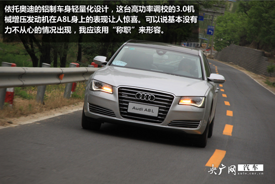 依托奧迪的鋁制車身輕量化設計,這臺高功率調(diào)校的3.0機械增壓發(fā)動機在A8L身上的表現(xiàn)讓人驚喜?梢哉f基本沒有力不從心的情況出現(xiàn),我應該用“稱職”來形容。