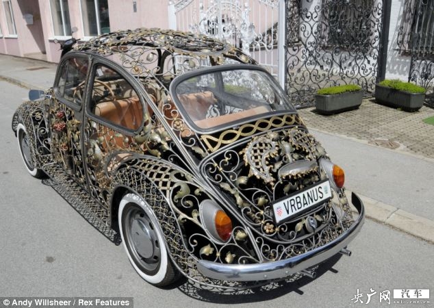 克羅地亞一家鐵藝門(mén)制造商近日打造出一輛獨(dú)一無(wú)二的甲殼蟲(chóng)經(jīng)典車(chē)型。該車(chē)回歸古典風(fēng)格,整個(gè)車(chē)身由獨(dú)特設(shè)計(jì)的熟鐵打造而成,外表雕刻成精美的鏤空花樣。該車(chē)的設(shè)計(jì)用時(shí)4個(gè)月,由3個(gè)工匠花費(fèi)3000個(gè)工時(shí)手工打造,包括外觀24克拉金葉的設(shè)計(jì)和手工縫制的皮制內(nèi)飾。車(chē)內(nèi)的每個(gè)組成部分都是定做的。