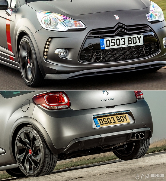 DS3敞篷Racing限量版是基于雙門DS3 Racing版打造的,外觀上對(duì)比普通版,紅色條紋涂裝和磨砂漆面,而高度也降低了15mm,長(zhǎng)度增加了30mm。18英寸的輪轂與黑色纖維車頂不但帶來(lái)更運(yùn)動(dòng)化的外觀,還在一定程度上增加了操控性。