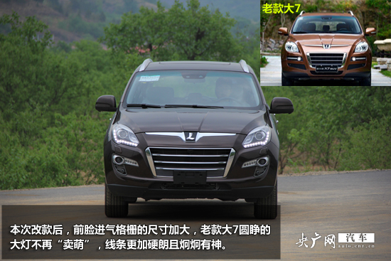 本次改款后,前臉進氣格柵的尺寸加大,老款大7圓睜的大燈不再“賣萌”,線條更加硬朗且炯炯有神。同時前大燈的結(jié)構(gòu)也改進為氙氣大燈搭配“L”造型LED日間行車燈,實際駕駛中,燈光將視行駛環(huán)境自動開啟關(guān)閉,非常方便。
