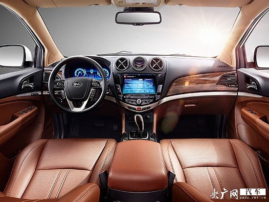 比亞迪唐的內飾設計也與比亞迪S7基本保持一致,只是該車的儀表盤采用的是液晶屏幕,空調出風口為十字樣式,另外中控臺上使用了木紋裝飾。
