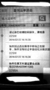 華商報(bào)記者從順豐管理系統(tǒng)之一的“查詢運(yùn)單路由”中看到,物品從西安到廣州都屬于正常,但2月22日16:16記錄顯示,“巴槍輔助碼缺失,請(qǐng)檢查”。2月23日,在“投訴歷史”中記錄,“此件在我辦自動(dòng)化解包時(shí)發(fā)現(xiàn)異常,快件外包裝破損,內(nèi)用氣泡膜包裹一個(gè)首飾盒,盒內(nèi)無(wú)物品,已正常上報(bào),請(qǐng)跟進(jìn)”。