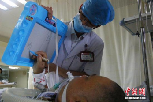 2017年1月27日,濱州醫(yī)學院附屬醫(yī)院急診科重癥監(jiān)護室醫(yī)生在給患者做檢查。中新網(wǎng)邱宇 攝