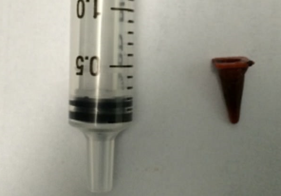 這名男子近一年多的時(shí)間一直咳出黃色粘液,并且感覺有些不舒服,于是來(lái)向醫(yī)生求助。掃描后發(fā)現(xiàn),他的肺部有一個(gè)腫塊。由于該男子有30年的煙齡,醫(yī)生懷疑他患有肺癌。但經(jīng)過(guò)氣道檢查才發(fā)現(xiàn),這名男子氣管中的物質(zhì)是他40年前吞下的玩具交通錐。