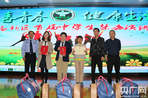 央廣網(wǎng)合肥4月19日消息 為了進一步強化校園毒品預(yù)防教育工作,不斷增強青少年識毒、防毒、拒毒意識,4月18日,合肥市高新區(qū)首屆中學生“無毒青春 健康生活”演講比賽舉行。