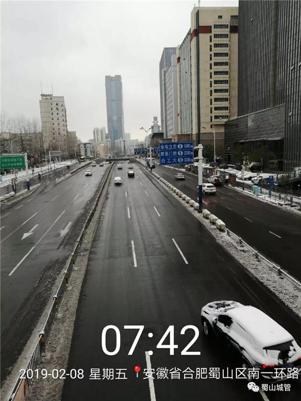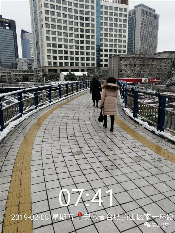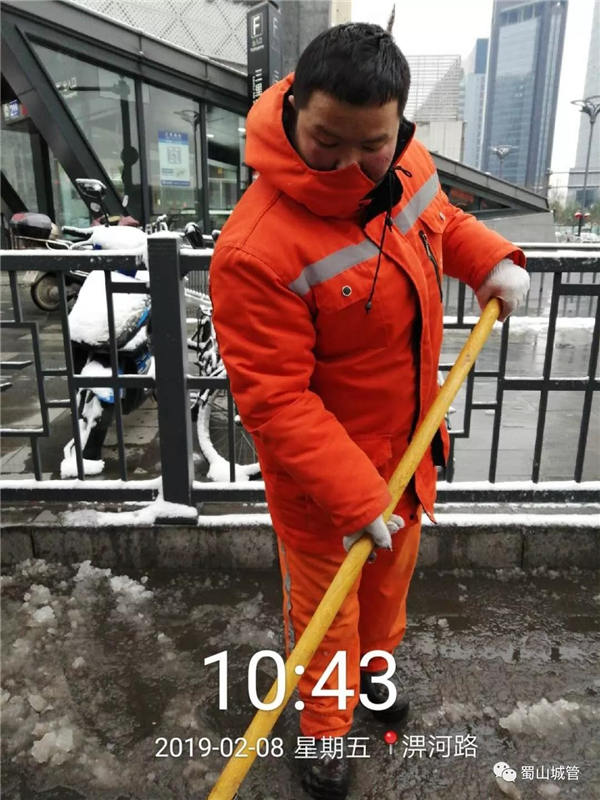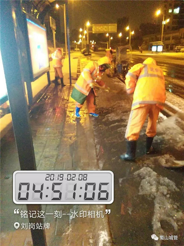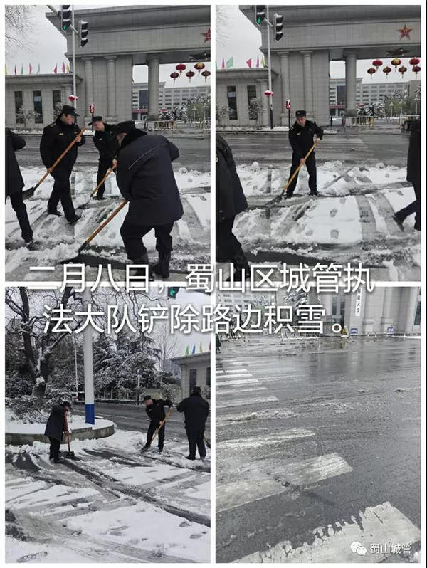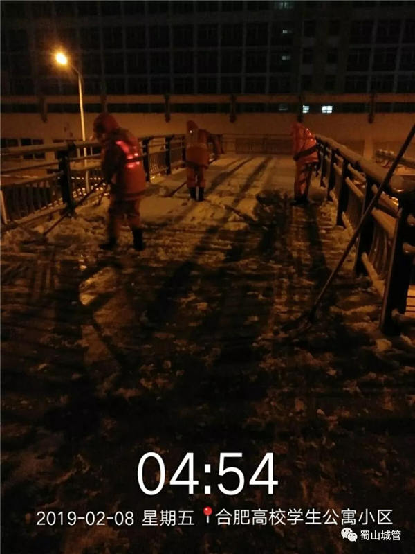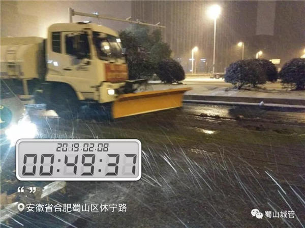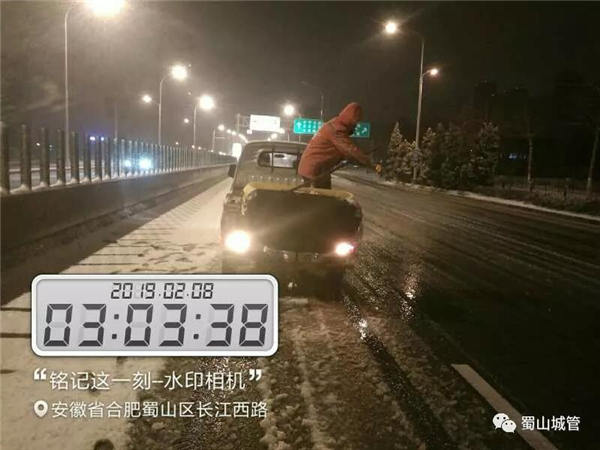 這個雪夜,環(huán)衛(wèi)橘和城管藍又是一夜無眠,他們奔走在合肥各個大街小巷,為市民的安全出行保駕護航。