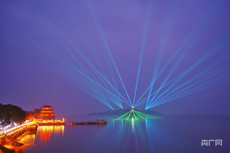 “快看,開始了!”備受期待的激光秀準(zhǔn)點啟幕。數(shù)道彩色光束從姥山島不同點位齊齊射出,劃破夜空,在巢湖碧波之上鋪展出一幅流光溢彩的夢幻畫卷。光影流轉(zhuǎn)間,歡呼聲此起彼伏,節(jié)日的喜慶氛圍被推向高潮。
