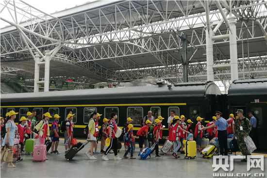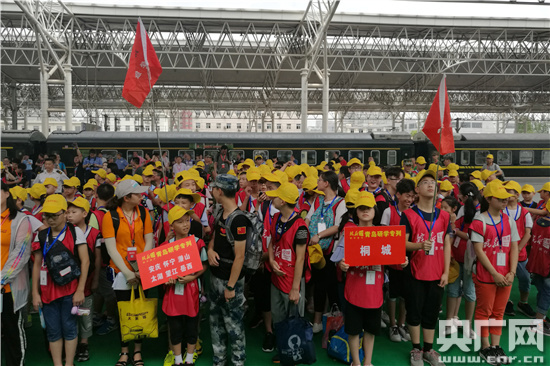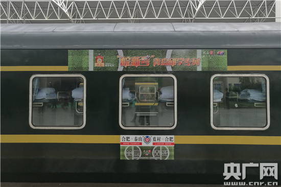 央廣網合肥7月4日消息(記者劉軍)“嗚——”7月4日12時52分,隨著一聲響亮的汽笛聲,全國首個校園足球專題研學專列——“皖新號”青島研學專列從合肥火車站出發(fā),一路將?堪霾骸⑺拗,最終載著800余名安徽全省各地的孩子奔向山東,開啟一段為期6天的專列研學時光。