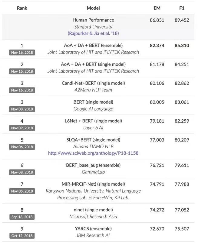 機(jī)器自然語(yǔ)言理解挑戰(zhàn)賽(SQuAD)