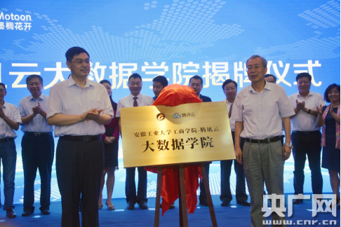 央廣網(wǎng)馬鞍山7月16日消息(記者徐鵬 通訊員李加穩(wěn))2018年7月15日上午,安徽省首家“騰訊云大數(shù)據(jù)學(xué)院”落戶安徽工業(yè)大學(xué)工商學(xué)院。中國工程院院士、教育部工程研究中心主任桂衛(wèi)華、馬鞍山市副市長馬少華共同為大數(shù)據(jù)學(xué)院揭牌。