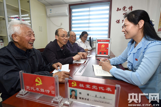 央廣網(wǎng)安徽頻道5月9日合肥消息 合肥市瑤海區(qū)三里街街道三里三村社區(qū)的黨代表工作室,合肥市黨代表吳小華在和社區(qū)群眾面對面交流,收集群眾提出的意見和建議。