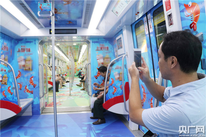 車廂內(nèi),大部分乘客的目光瞬間被五彩繽紛的車廂內(nèi)景吸引,紛紛掏出手機(jī)拍照留念! -