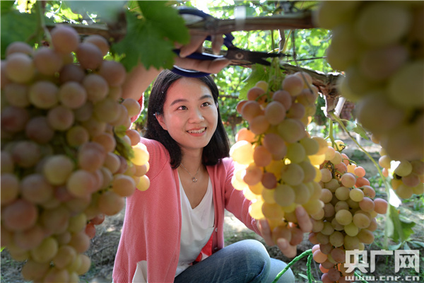 央廣網(wǎng)合肥9月8日消息 9月7日,游客正在合肥市長豐縣陶樓鎮(zhèn)一合作社采摘葡萄。