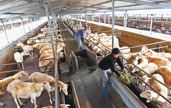 近日,在省標準化養(yǎng)殖示范基地——廬江縣祥瑞養(yǎng)殖有限公司里,工人正在按標準化養(yǎng)殖法給湖羊喂草。今年,該縣冶父山鎮(zhèn)依托“祥瑞”公司成立了湖羊養(yǎng)殖扶貧產(chǎn)業(yè)園,采取“龍頭企業(yè)+合作社+貧困戶”的模式,讓貧困戶每年收獲保底紅利4000元,幫助557戶貧困戶踏上養(yǎng)羊脫貧路。通訊員 周躍東 攝
