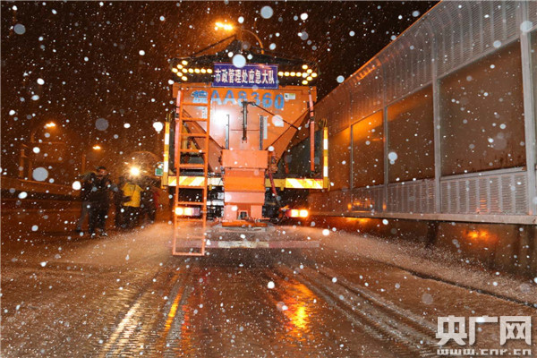 央廣網(wǎng)合肥1月4日消息(記者劉軍 通訊員殷。1月3日至6日,合肥市迎來今冬首場降雪,且達(dá)到暴雪級別。為保障全市高架橋、立交橋等市管橋梁及重點(diǎn)路段、重點(diǎn)區(qū)域在暴雪天氣下的安全暢通,合肥市城鄉(xiāng)建委市政處3日上午及時啟動應(yīng)急響應(yīng),112臺套綜合除雪應(yīng)急設(shè)備及500余名應(yīng)急隊員迅速在五里墩立交橋、阜陽北路等6個市政應(yīng)急點(diǎn)完成集結(jié)。根據(jù)雪情,合肥市市政處不間斷循環(huán)作業(yè),至1月4日7時,經(jīng)過一晝夜的奮戰(zhàn),合肥市九座高架橋及市管重點(diǎn)橋梁通行正常。