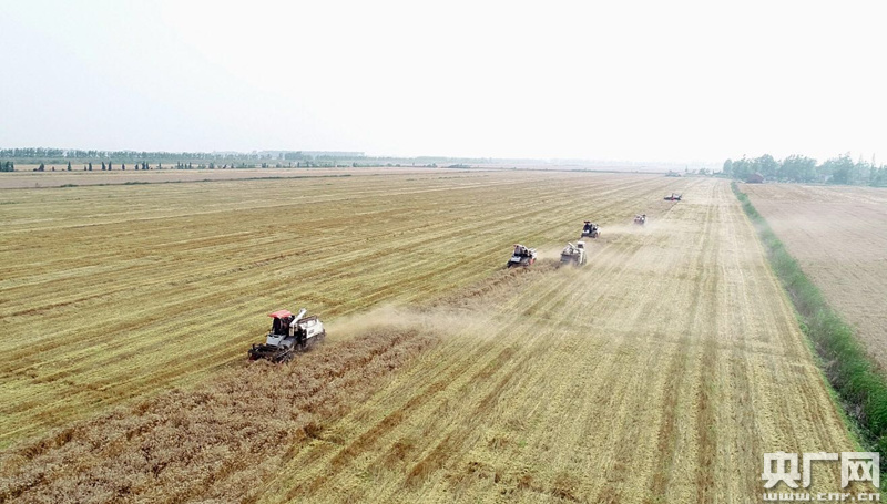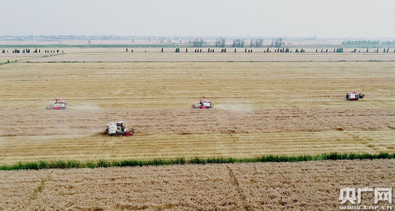•   圖為華陽河農(nóng)場麥?zhǔn)宅F(xiàn)場。 (李龍 徐麗燕 攝)