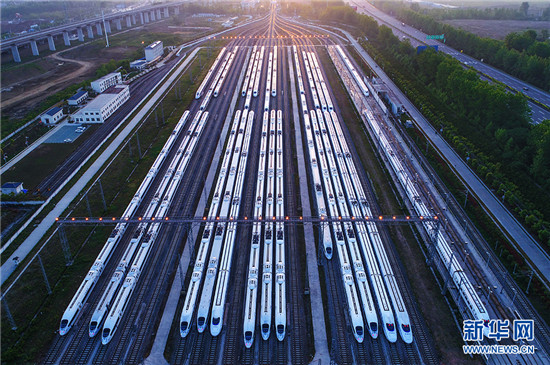 航拍鏡頭下的動(dòng)車(chē)檢修所。新華網(wǎng) 陳揚(yáng) 攝