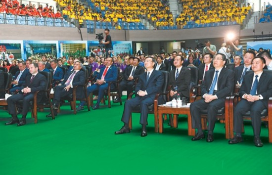 6月16日下午,國務(wù)委員楊潔篪、俄羅斯總統(tǒng)全權(quán)代表巴比奇、省委書記李錦斌、省長李國英共同出席第四屆中俄“長江—伏爾加河”青年論壇閉幕式。記者吳文兵攝