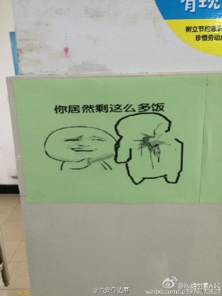 “學(xué)校食堂是在校期間必須要去的地方,但是不是到現(xiàn)在你還是對(duì)那有著特殊的回憶呢?六安皖西衛(wèi)生職業(yè)學(xué)院的食堂,里面張貼的表情,我是該說(shuō)下太厲害了撒!”近日,網(wǎng)友“麥小麥”的帖子,在論壇里引起了眾多網(wǎng)友的關(guān)注。