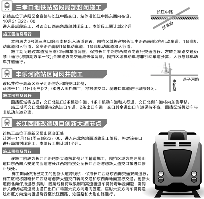 據(jù)安徽商報消息 合肥交警部門發(fā)布消息,10月31日22:00起,合肥金寨路與長江中路交口西南角局部封閉施工;11月1日晚,合肥燕子河路永和路交口北側(cè)、長江西路改造項目創(chuàng)新大道節(jié)點也將開始封閉施工。