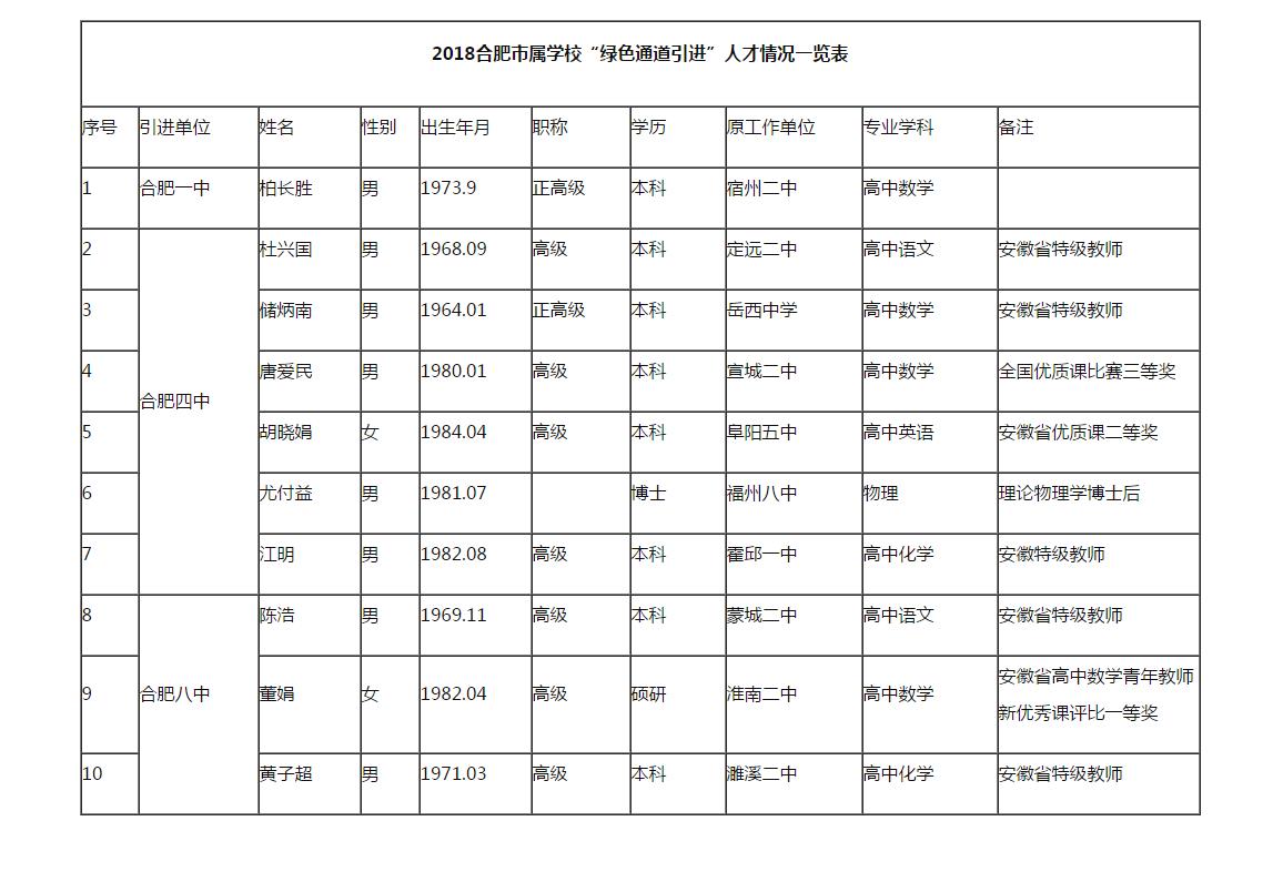 今年合肥市屬學(xué)校引進(jìn)人員已經(jīng)入公示階段